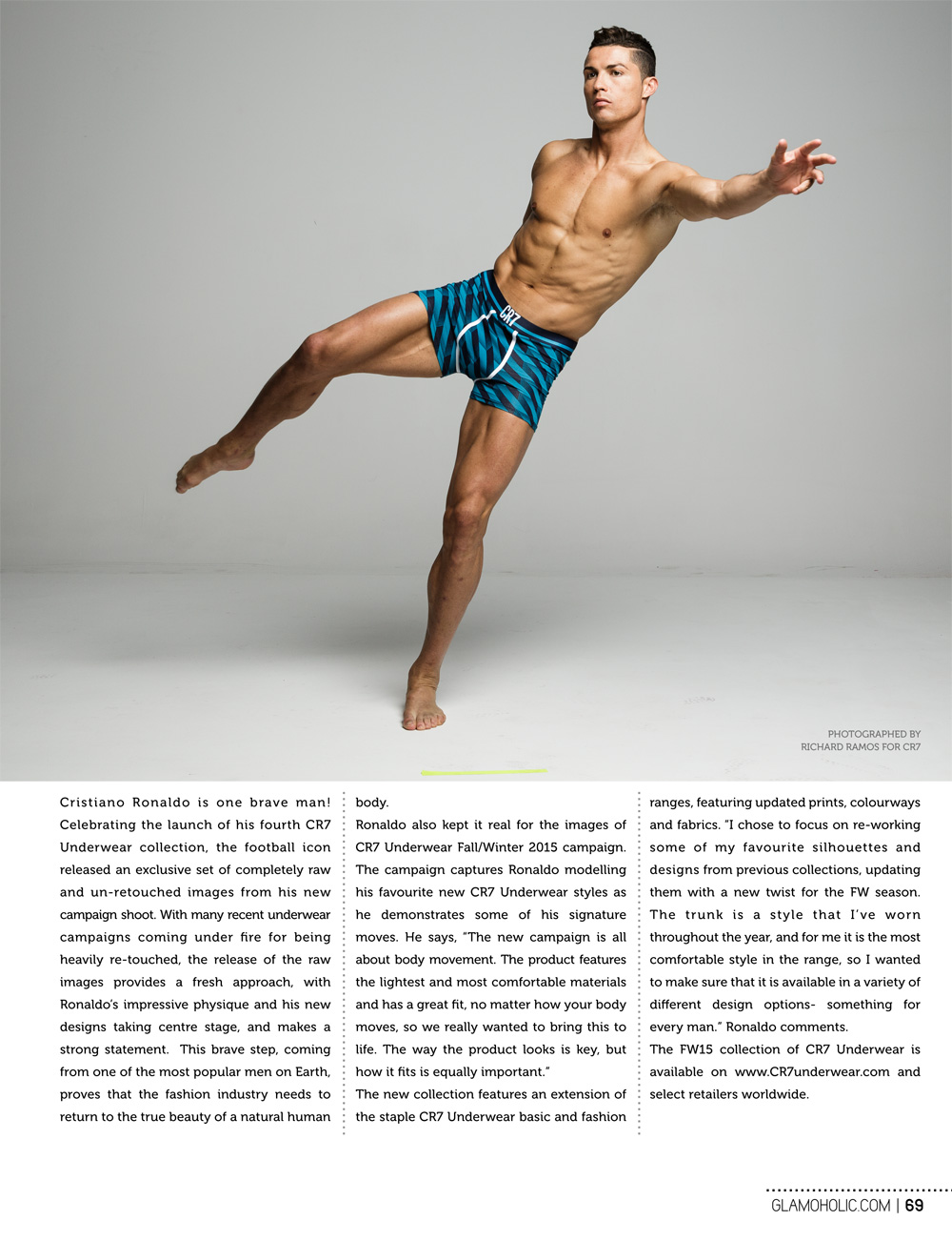 | Celebrating the launch of his fourth CR7 underwear collection, Cristiano Ronaldo released an exclusive set of completely raw and unretouched images from his new campaign shoot.
