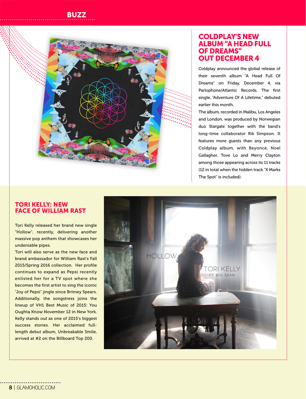 |Coldplay's New Album 'A Head Full of Dreams" Out December 4 - Tori Kelly: New Face of William Rast.