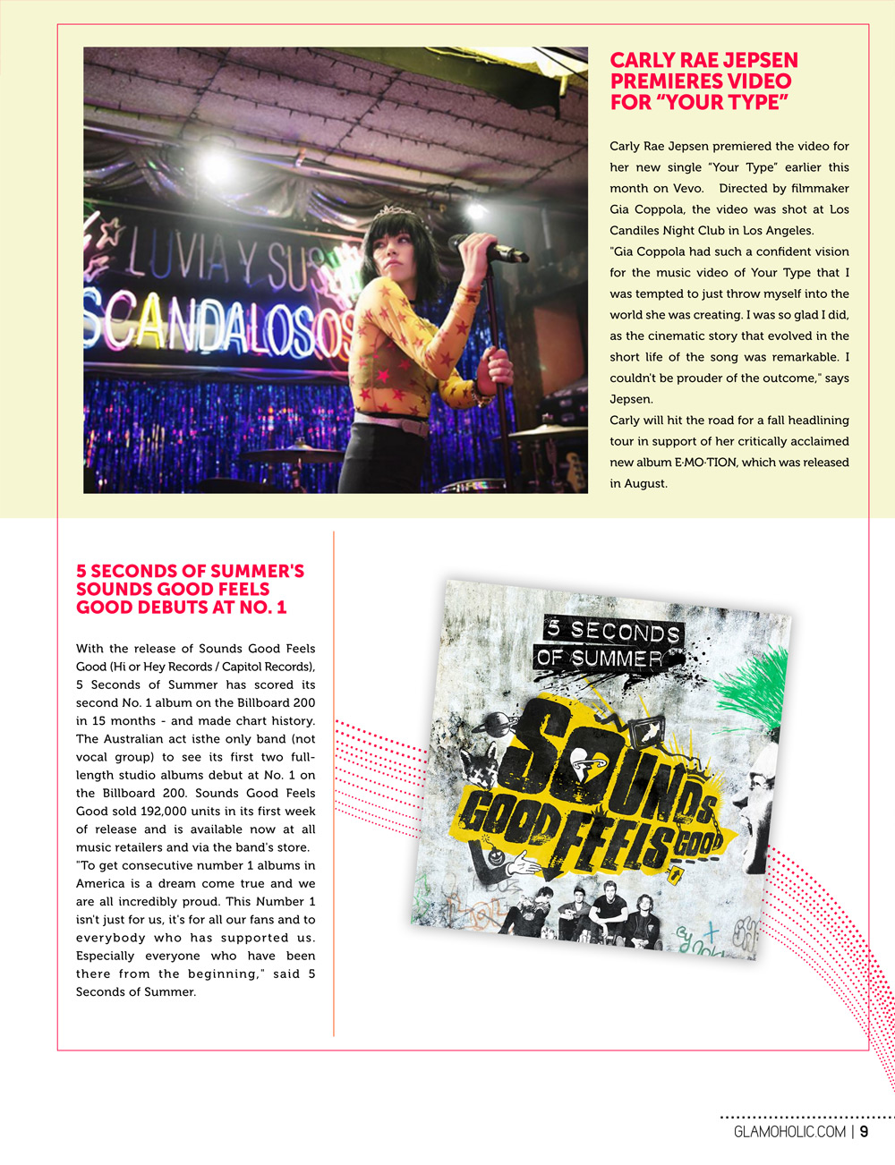 | Carly Rae Jepsen Premieres Video For 'Your Type' - 5 Seconds of Summer's Sounds Good Feels Good Debuts at No. 1.